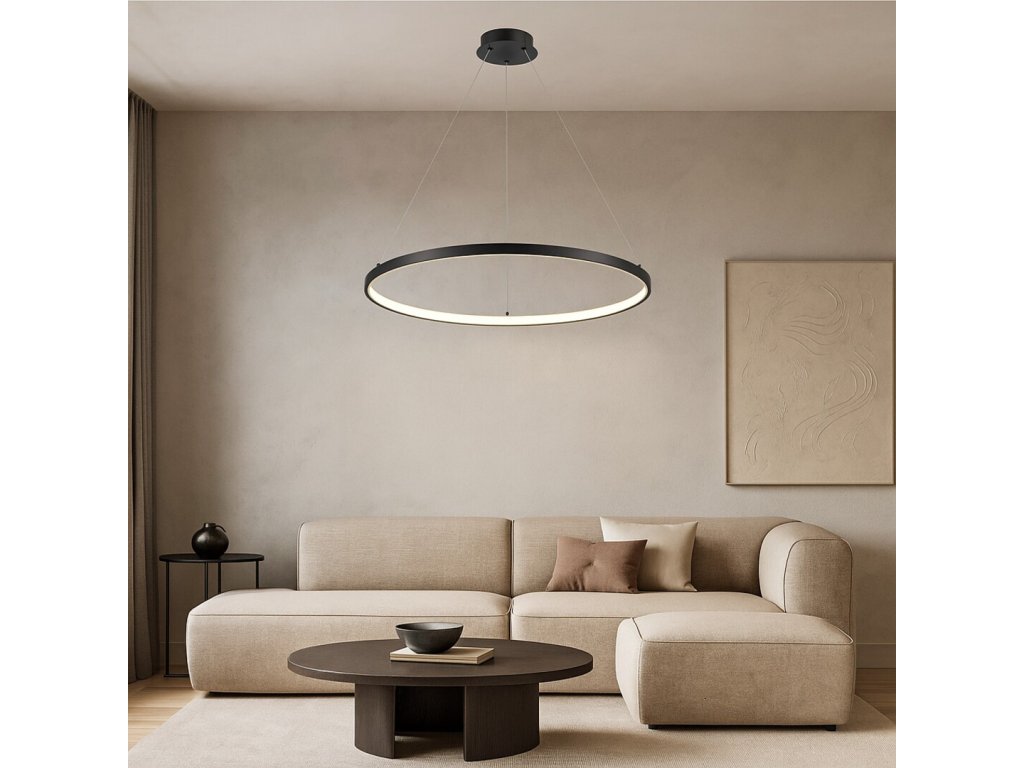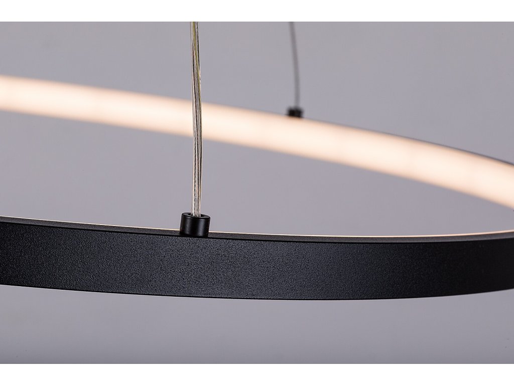 Závěsné LED svítidlo Beliza osloví čistým a nadčasovým designem, který se přirozeně uplatní v moderních i minimalisticky laděných interiérech. Dominantním prvkem svítidla je tenký kruhový profil z kovu v elegantní černé barvě, jehož vnitřní obvod je osazen bílým silikonovým stínidlem. To zajišťuje rovnoměrné rozptýlení světla po celé ploše kruhu a vytváří příjemný, neoslňující světelný efekt. Svítidlo je zavěšeno na kovových lankách ve stříbrném provedení, která podtrhují jeho lehký a vzdušný vzhled a umožňují estetické začlenění do prostoru.