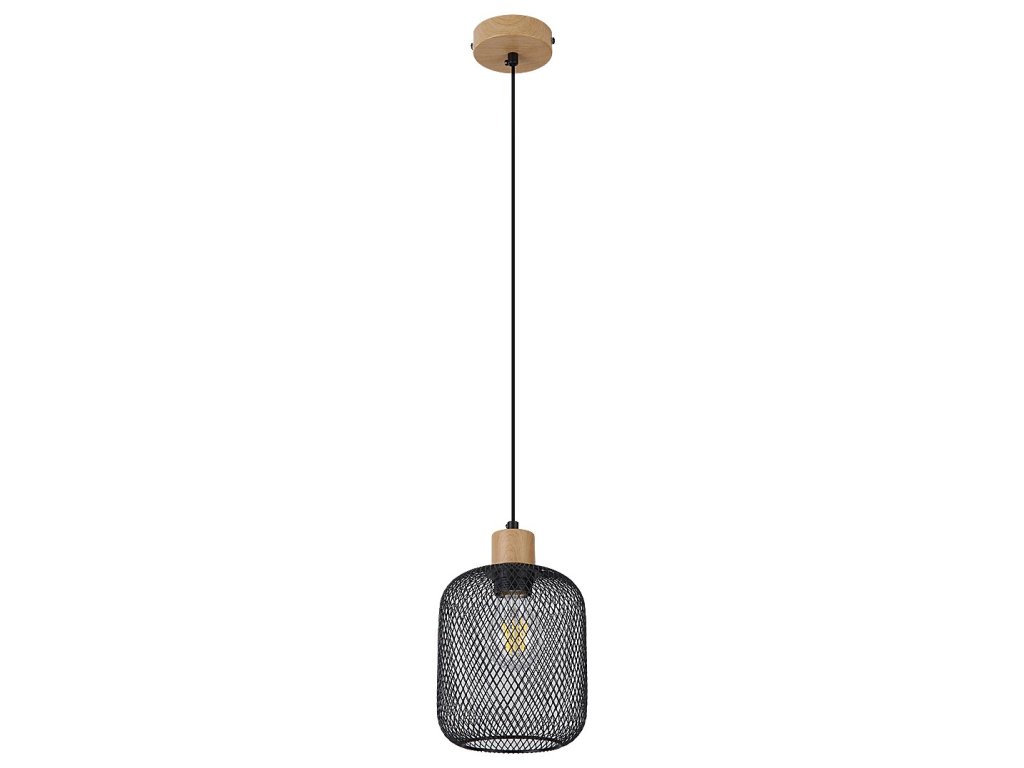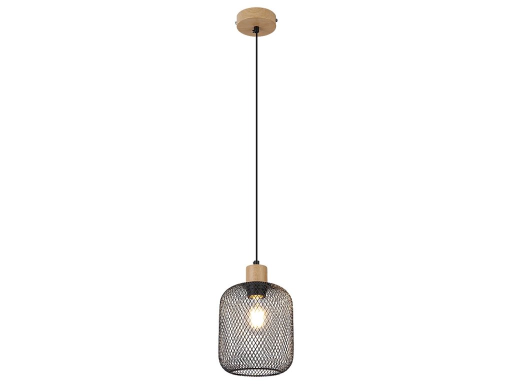 Černý závěsný lustr Grendel s dekorem dřeva pro žárovku E27