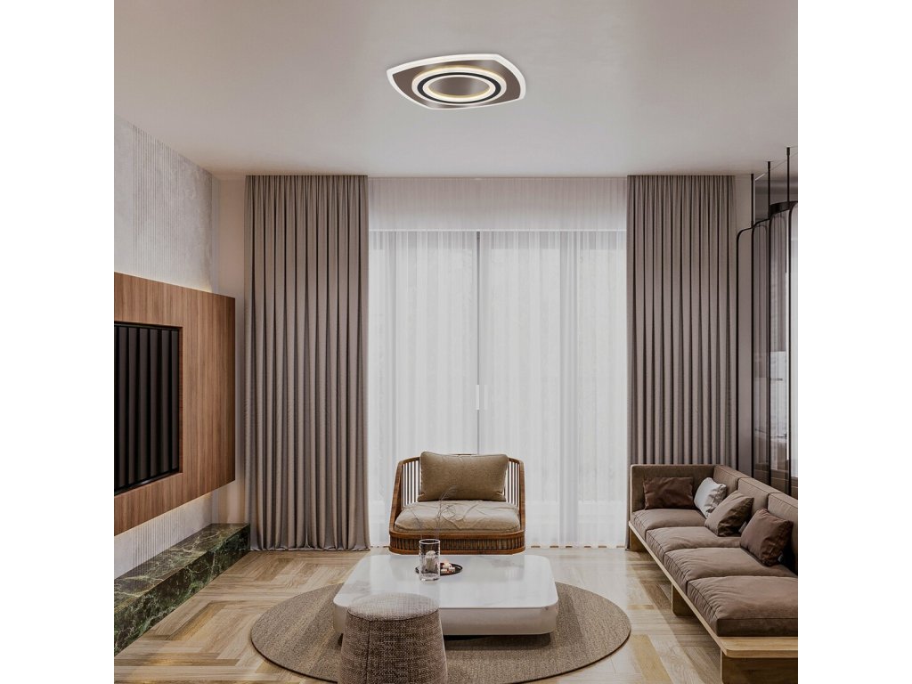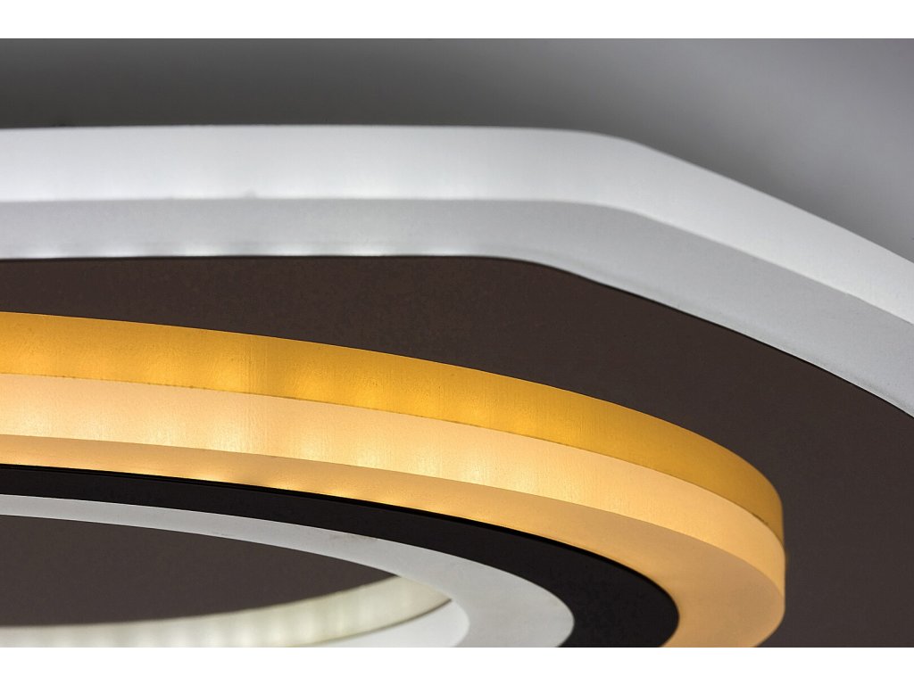 Moderní stropní svítidlo Taneli2 přináší do interiéru elegantní design v kombinaci s pokročilými funkcemi, které zajistí maximální komfort při používání. Čtvercový tvar dodává svítidlu originální vzhled, zatímco kombinace černé a zlaté barvy s bílým akrylovým stínidlem vytváří luxusní a stylový dojem. Vrstvená struktura s efektními světelnými prstenci navíc umocňuje jedinečný vizuální efekt.