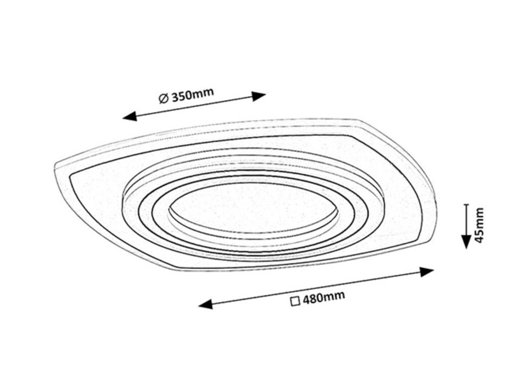Díky moderní LED technologii je svítidlo nejen výkonné, ale také energeticky úsporné a nabízí dlouhou životnost až 20 000 hodin. Rozměry svítidla jsou 480 x 480 mm, vzdálenost od stropu 45 mm, instalační průměr 350 mm. Na toto svítidlo poskytujeme prodlouženou záruku 5 let.