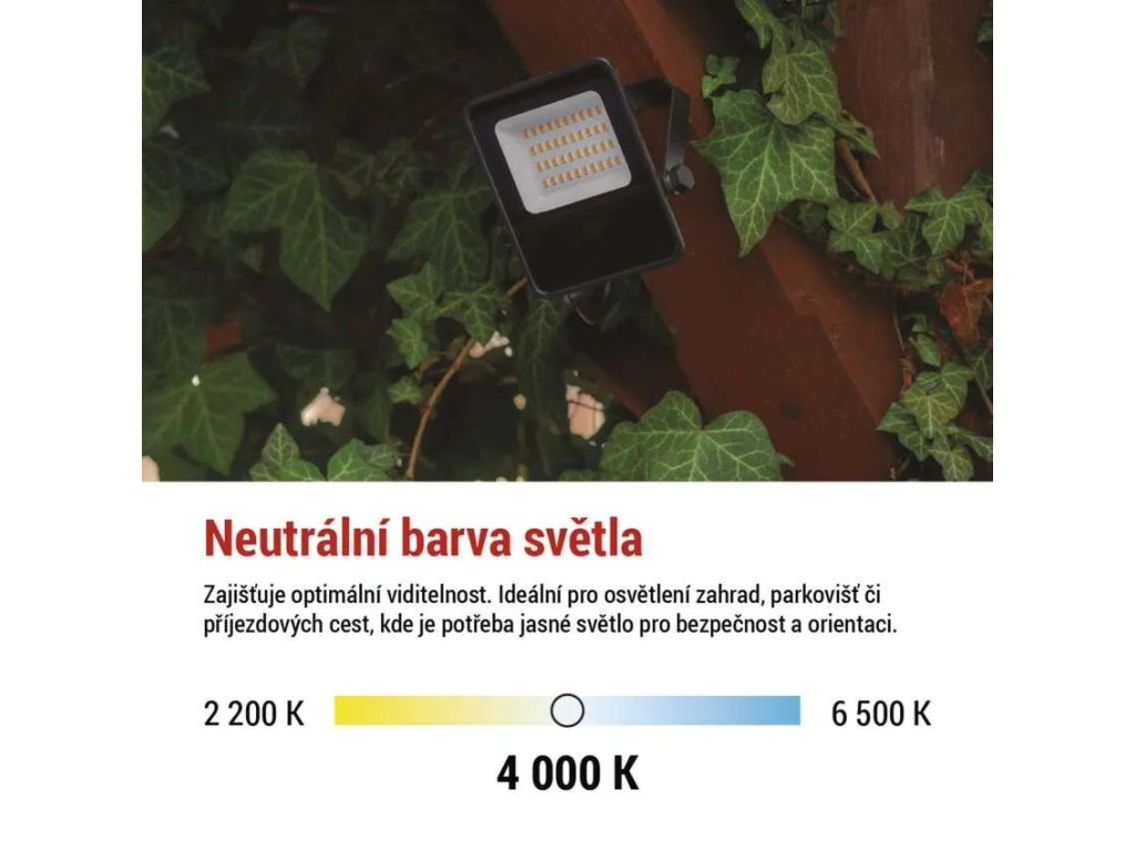 LED reflektor s výkonem 20W představuje moderní, spolehlivé a energeticky úsporné řešení pro osvětlení venkovních i vnitřních prostor. Se světelným tokem 3 000 lumenů nabízí dostatek světla pro nasvícení dvora, garáže, příjezdové cesty nebo skladových prostor. Díky pokročilé LED technologii s vysokou účinností 150 lm/W svítí intenzivně, ale zároveň šetří náklady na elektřinu.