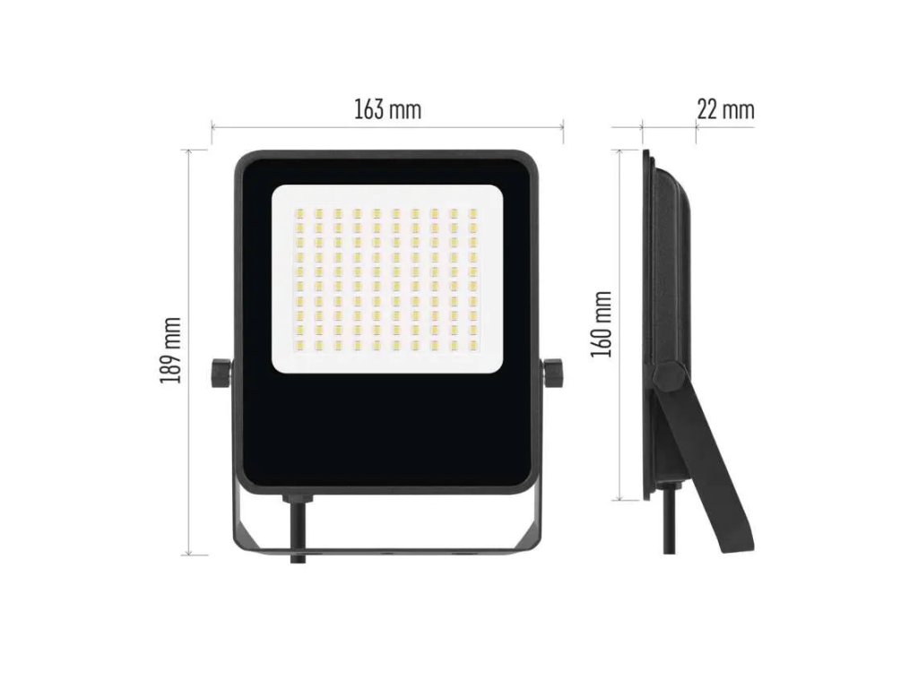 Reflektor je ihned po zapnutí na plném výkonu, bez nepříjemného blikání. Hodí se nejen pro stálé osvětlení, ale i jako bezpečnostní světlo, které lze zapojit do systému s pohybovým čidlem. Jeho kompaktní rozměry a zešikmená montážní konzole umožňují snadnou instalaci a flexibilní nastavení úhlu svícení podle potřeby. Ocelová montážní konzole je připravená pro rychlé uchycení – stačí nasadit a připojit do sítě.