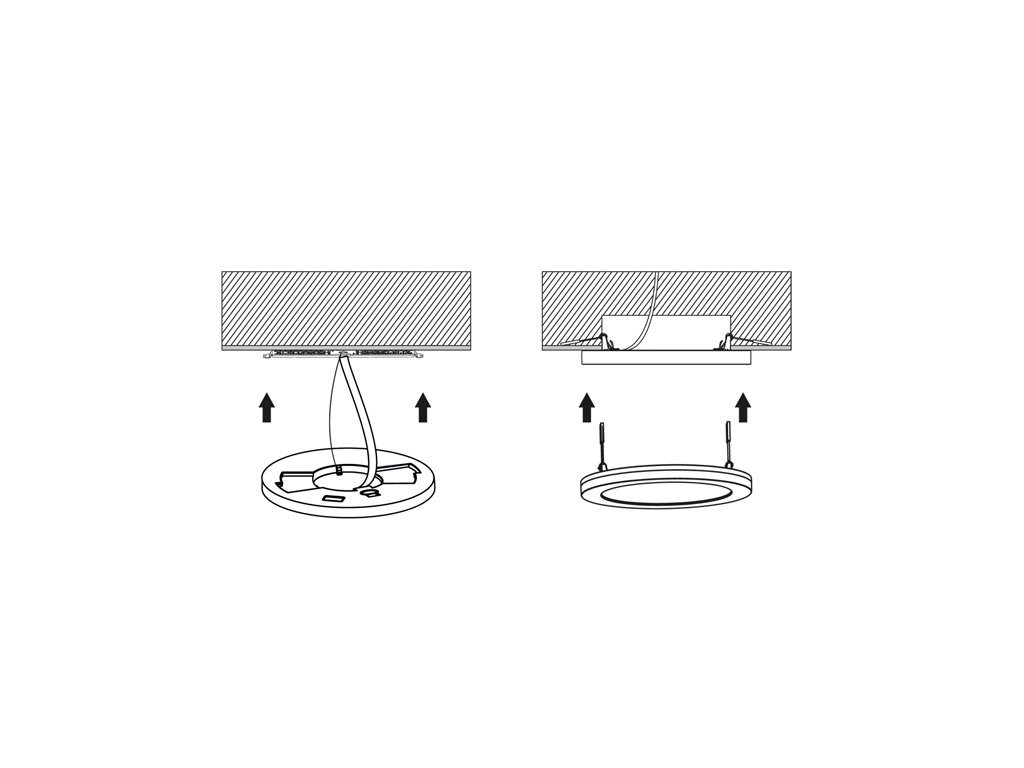 Svítidlo lze nainstalovat jako přisazené buďto přišroubováním k povrchu přímo nebo upevněním pomocí posuvných pružinek, které se vloží do připraveného otvoru podobně jako u bodových svítidel. K rychlému zapojení kabelů bez šroubování je připravena vestavěná svorkovnice.