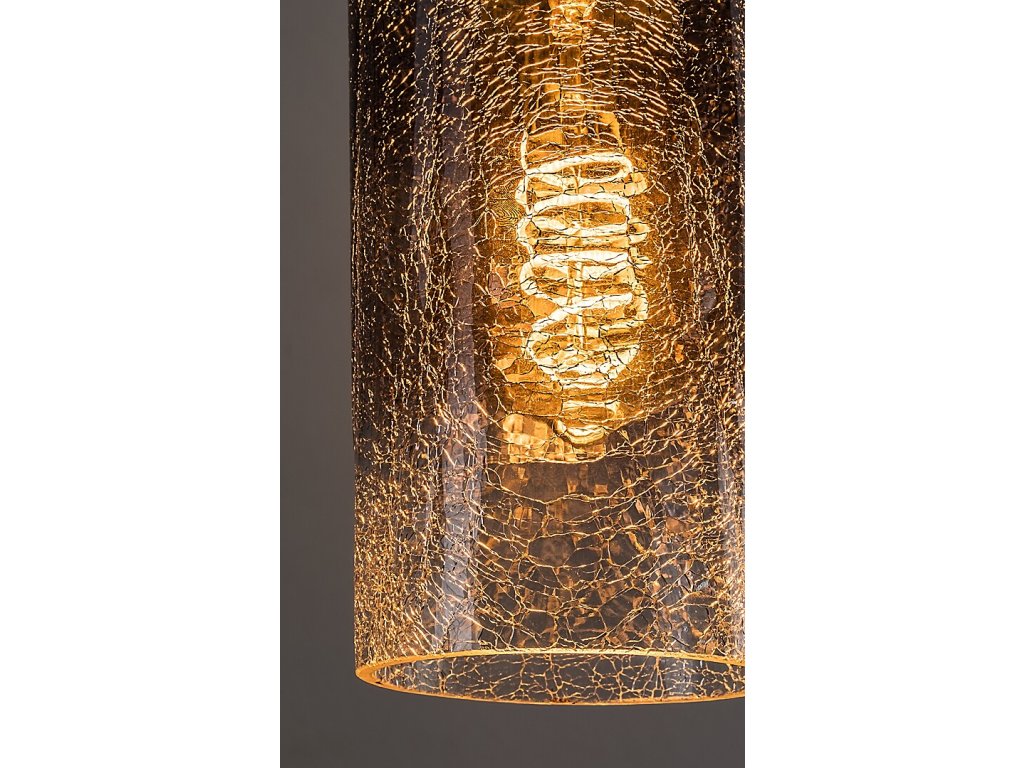 Průměr skleněného stínidla činí přibližně 100 mm, instalační průměr stropní základny je 95 mm a maximální délka zavěšení dosahuje 1 200 mm. Výšku svítidla lze při montáži upravit podle potřeb prostoru, což umožňuje jeho použití jak samostatně, tak i v sestavě více svítidel nad jídelním stolem nebo kuchyňským ostrůvkem.