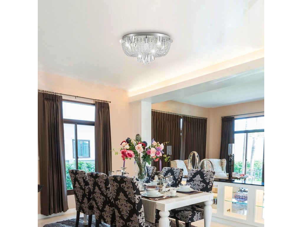 Stropní svítidlo Larisha je skvostným prvkem klasického stylu, který do vašeho interiéru vnese noblesu a luxus. Jeho kulatý kovový základ v chromové úpravě dokonale ladí s bohatými řetězy průhledných skleněných krystalů, které působí jemně a elegantně. Každý detail tohoto svítidla přispívá k jedinečnému světelnému efektu, který rozzáří váš prostor a vytvoří okouzlující atmosféru.