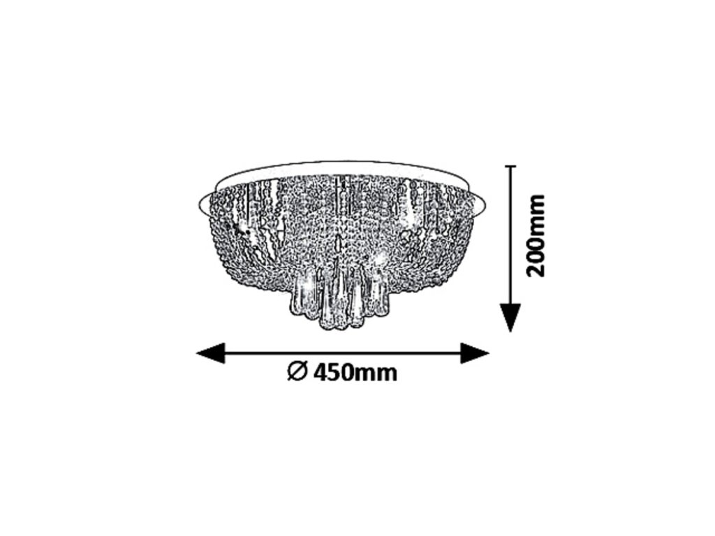 Díky svému průměru 450 mm a vzdálenosti 200 mm od stropu je ideální volbou pro prostorné obývací pokoje, jídelny nebo elegantní ložnice.