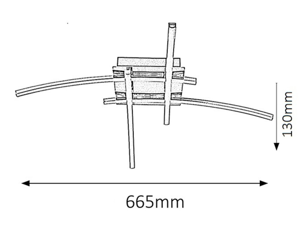 Rozměry svítidla jsou šířka 665 mm a vzdálenost od stropu 130 mm, což umožňuje instalaci i v místnostech s nižšími stropy, aniž by působilo rušivě.