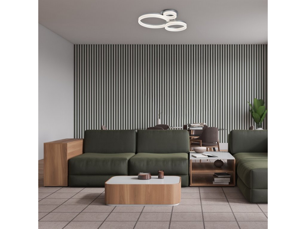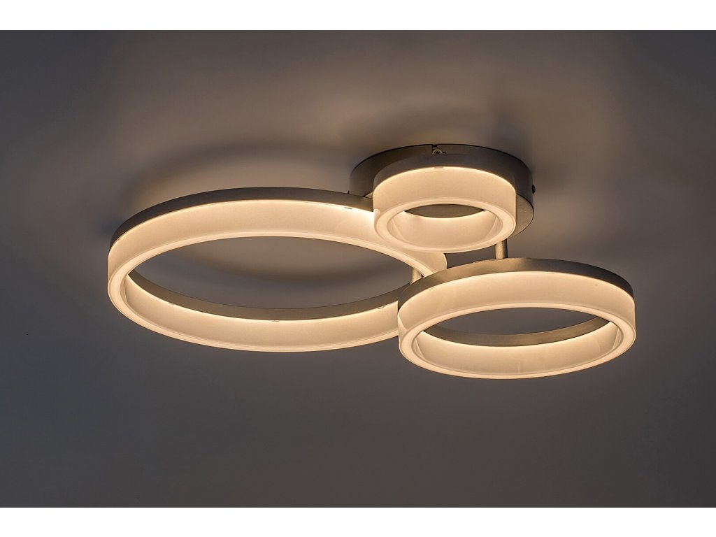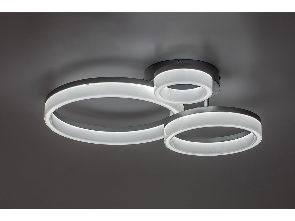 Stropní svítidlo Amilia zaujme elegantním a moderním designem, který se stane výrazným prvkem každého současného interiéru. Konstrukce svítidla je tvořena třemi vzájemně propojenými kruhovými prvky různých velikostí, které vytvářejí harmonickou a zároveň dynamickou kompozici. Kovové tělo v chromovém provedení působí čistě, elegantně a velmi nadčasově, přičemž decentní lesk dodává svítidlu lehký nádech luxusu. Bílé plastové stínidlo zajišťuje rovnoměrné rozptýlení světla bez oslnění. Díky svému vzhledu je svítidlo ideální volbou do moderních obývacích pokojů, jídelen i ložnic, kde podtrhne světlý a vzdušný charakter interiéru.