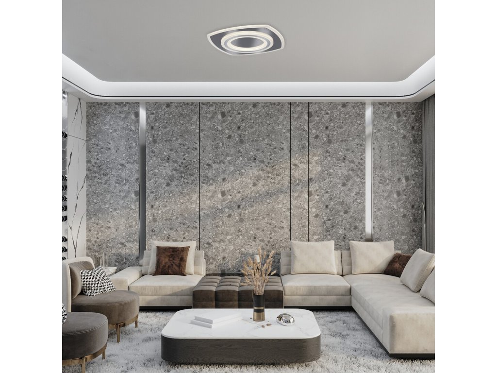 Moderní stropní svítidlo Taneli2 spojuje elegantní design s inovativními funkcemi, které přinášejí nejen kvalitní osvětlení, ale i vizuálně atraktivní prvek do interiéru. Čtvercový tvar v kombinaci s chromovým povrchem a bílým akrylovým stínidlem zajišťuje příjemné a rovnoměrné rozložení světla. Díky vrstvené konstrukci s jemnými světelnými prstenci vytváří svítidlo působivou atmosféru v jakémkoli prostoru.