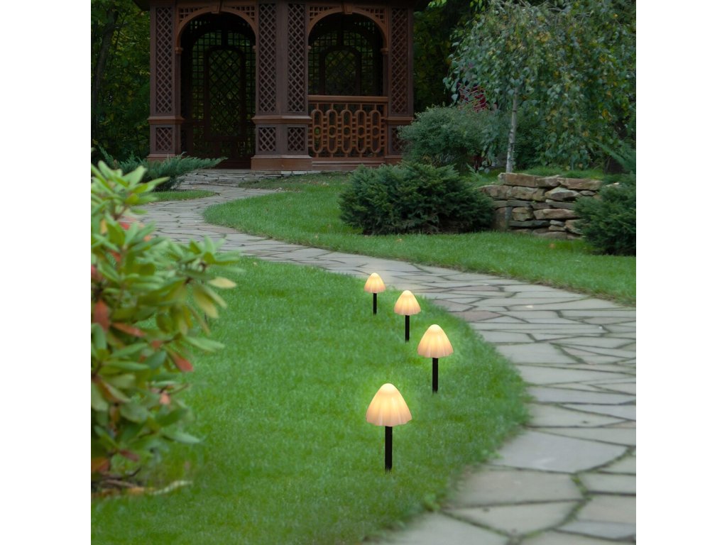 Venkovní solární řetěz Skadar vás okouzlí svým hravým designem ve tvaru hříbků a přinese vašemu exteriéru jemné a přitom stylové osvětlení. Tato sada deseti lampiček je ideální pro osvětlení zahradních cest, záhonů nebo prostoru před domem. Díky možnosti zapíchnutí do země lze lampy snadno a rychle rozmístit podle vašich potřeb.