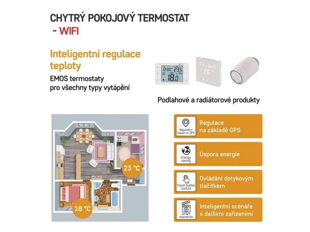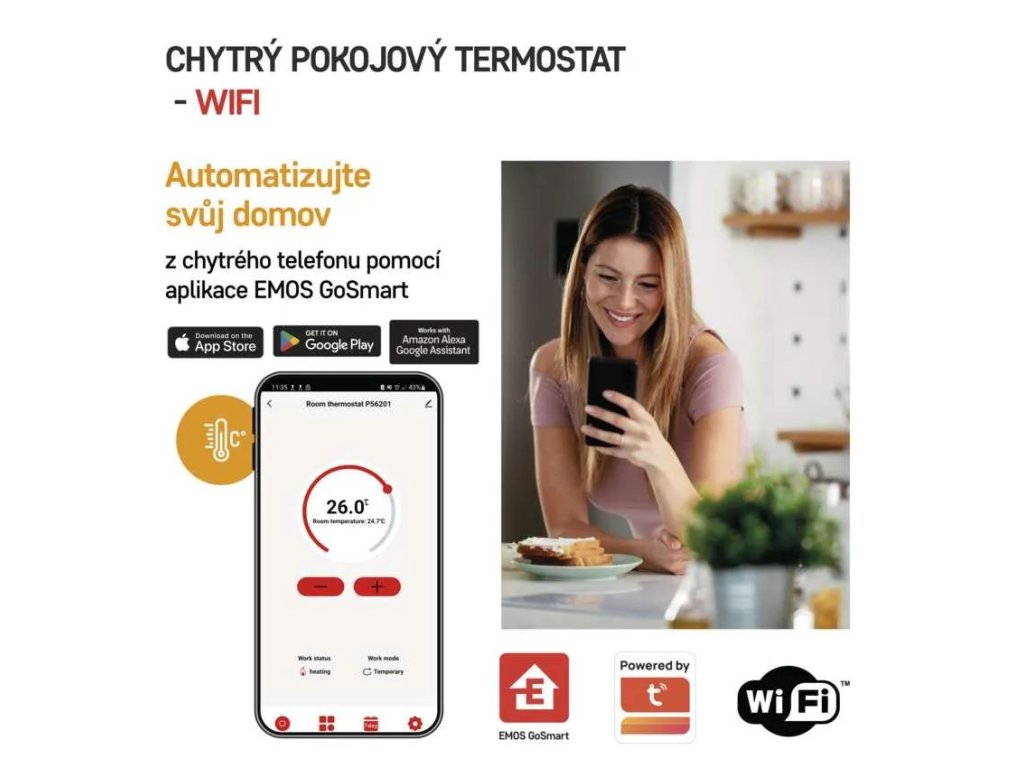 Poté stačí zařízení připojit k vaší domácí Wi-Fi síti a spárovat s plně jazykově lokalizovanou mobilní aplikací EMOS GoSmart nebo TUYA, která je dostupná pro Android i IOS. Díky kompatibilitě s Amazon Alexa a Google Assistant můžete využít i hlasového ovládání.