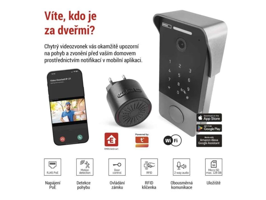 GoSmart Domovní videozvonek IP-21PoE s dveřním zámkem s WiFi