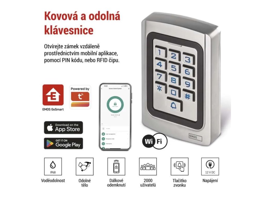 Kódová klávesnice s funkcí čtečky RFID čipů pro ovládání vstupů.