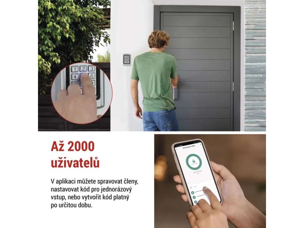 Další funkce: odemykání pomocí RFID čipu a PIN kódu, Wiegand input & output, zvonkové tlačítko
