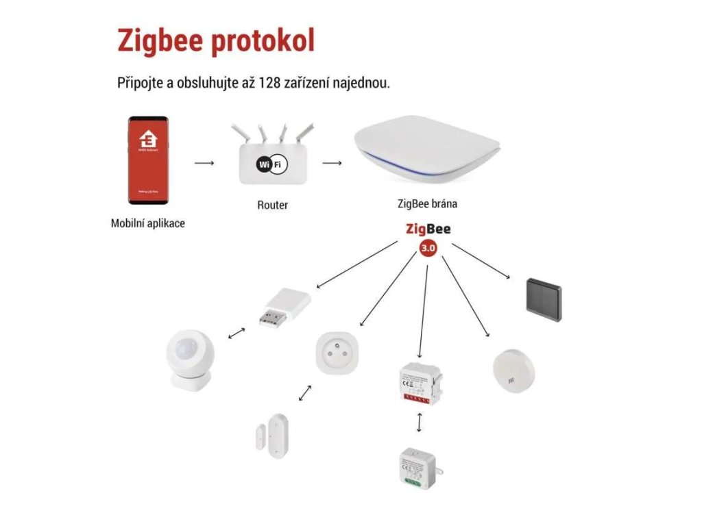 Podpora ZigBee 3.0 umožňuje připojení až 128 zařízení, která mezi sebou vytvářejí síť a rozšiřují tak dosah bez nutnosti přímého spojení s bránou. Díky tomu je komunikace stabilní, bezpečná a zároveň nezatěžuje WiFi síť. Brána navíc podporuje i Bluetooth protokoly BLE a SigMesh, takže do jednoho systému lze zapojit ještě širší spektrum chytrých zařízení.