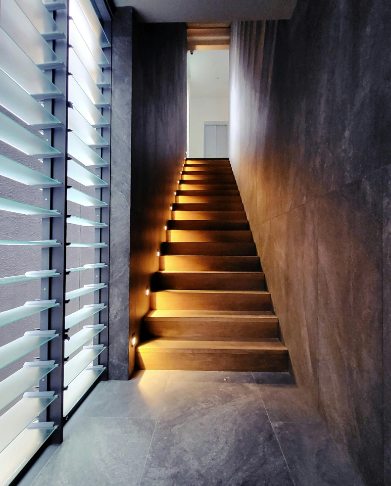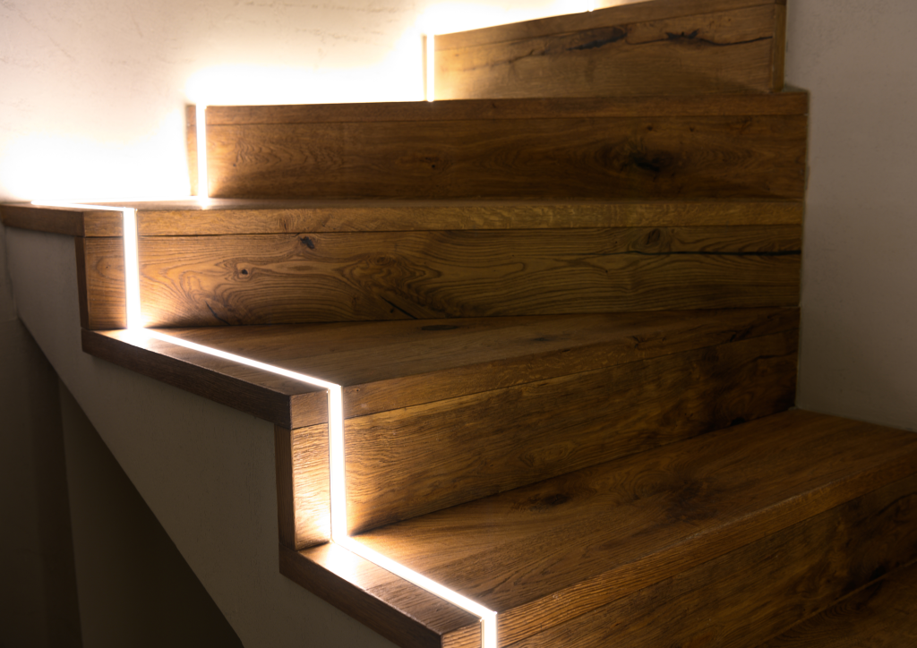 Schodiště patří k nejnebezpečnějším místům v každém domě. Tady už nejde jen o atmosféru, ale především o bezpečnost. LED pásky ve schodových hranách, orientační svítidla u podlahy a rovnoměrné horní osvětlení zásadně snižují riziko zakopnutí a pádu. Pokud se světlo rozsvítí automaticky při prvním kroku díky senzoru, minimalizuje se riziko i v naprosté tmě.