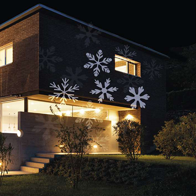 - LED projektory, které vykouzlí na fasádě hvězdy, vločky nebo jiné motivy