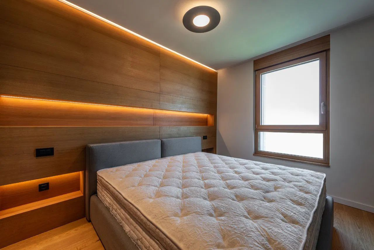 V ložnici, kde je často světlo umístěno nad postelí, vyberte lehké a nenápadné stropní LED svítidlo.