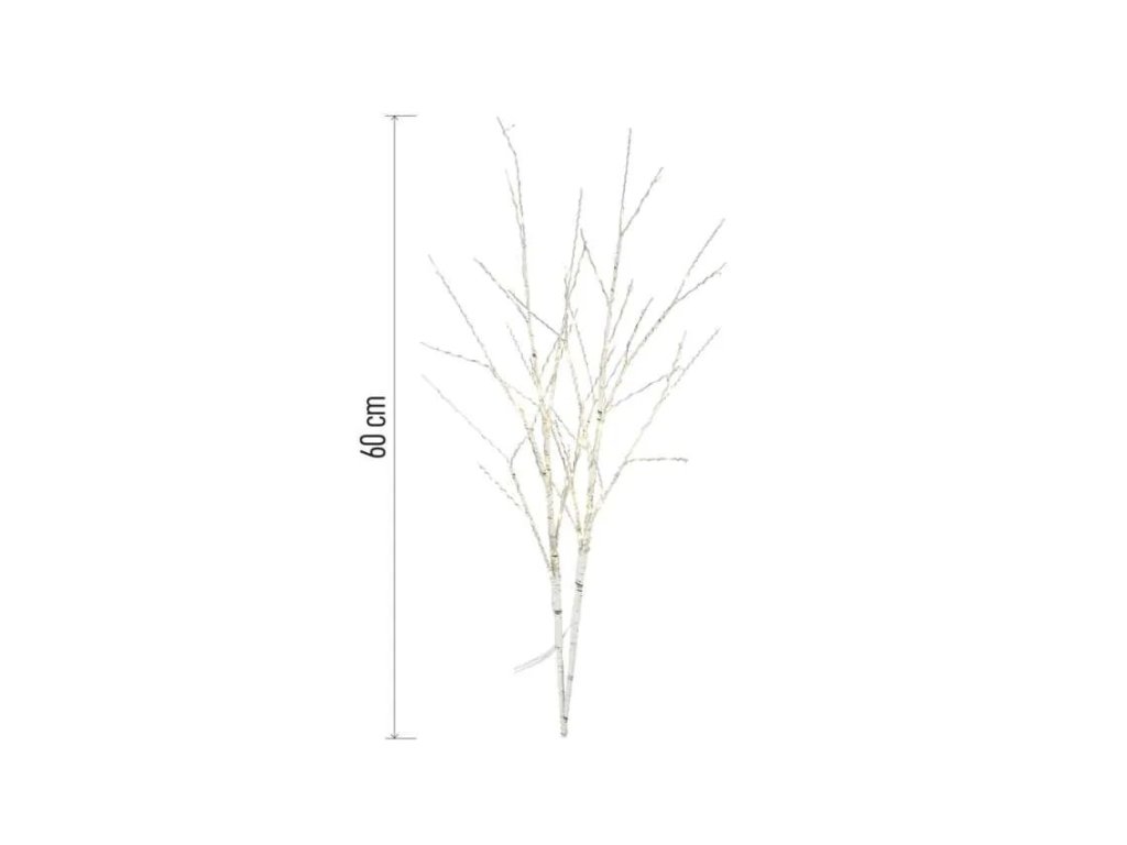 Set dvou světelných větví v bílé březové úpravě dokáže vytvořit jemně svítící dekoraci, která krásně zapadne do zimního období i do celoročního aranžmá. LED diody v teplé bílé barvě rovnoměrně podsvětlují celé větve a vytvářejí příjemnou atmosféru v interiéru i venkovních prostorách. Světelný efekt je klidný, nebliká a při večerním osvětlení působí měkce a přírodně.