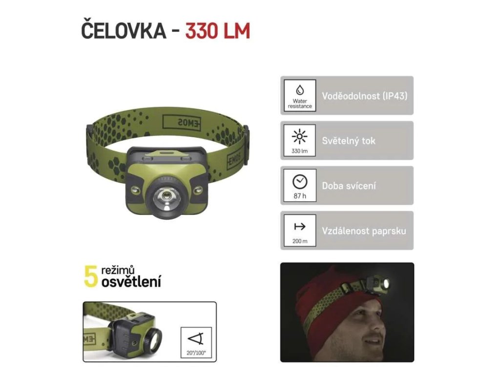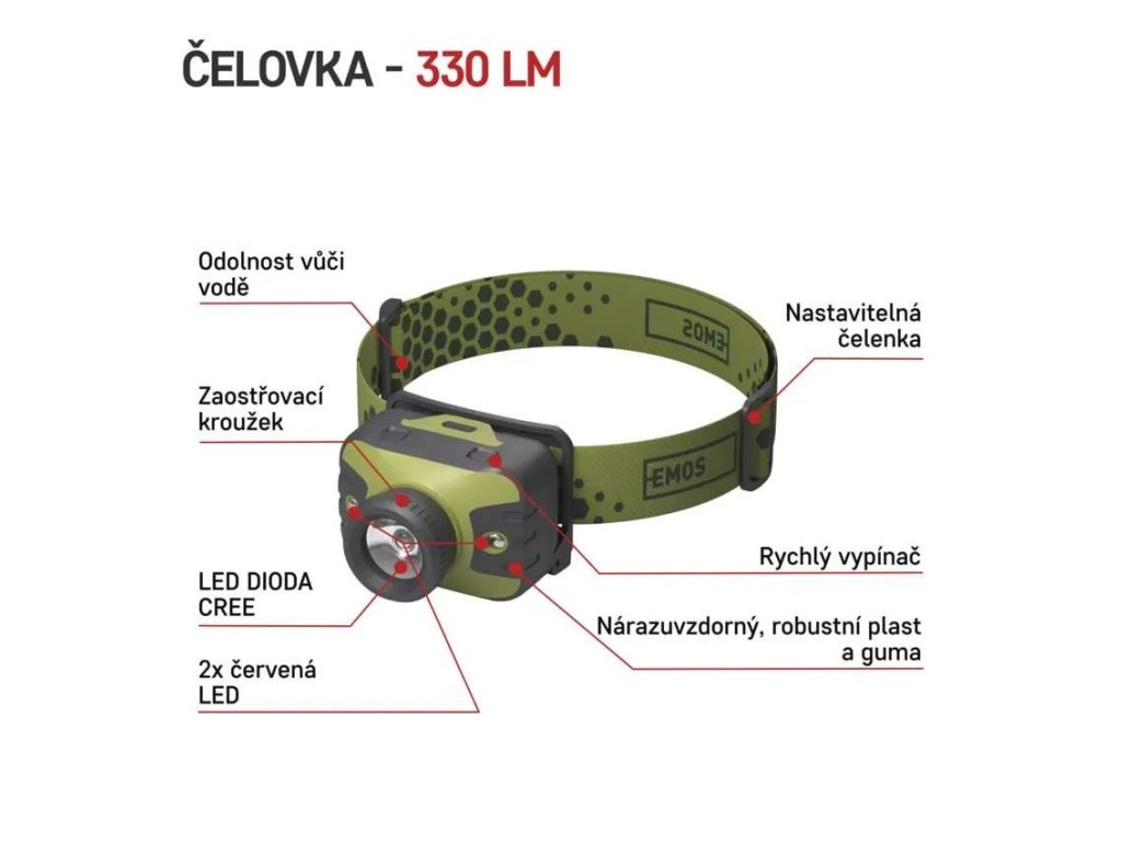 Spolehlivá a odolná čelovka s výkonem 330 lm je ideálním společníkem pro všechny, kdo potřebují mít při práci, sportu či pobytu v přírodě volné ruce a zároveň perfektní přehled o svém okolí. Díky výkonné CREE LED diodě a dvěma červeným LED nabízí hned pět režimů osvětlení včetně SOS blikání nebo nenápadného nočního svícení.