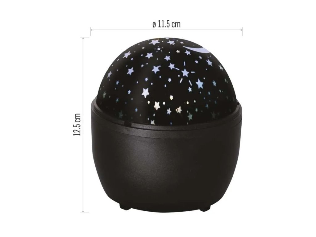 Napájení pomocí tužkových baterií AA nebo přes USB umožňuje bezpečné použití v jakékoli části pokoje bez nutnosti mít zásuvku v těsné blízkosti postele. Kompaktní provedení a jednoduché ovládání zajišťují snadné umístění na noční stolek, polici nebo jinou rovnou plochu. Projektor tak může doprovázet děti při usínání, při relaxaci nebo při tichých večerních aktivitách a dlouhodobě vytváří příjemný pocit klidu před spaním. Baterie nejsou součástí balení.