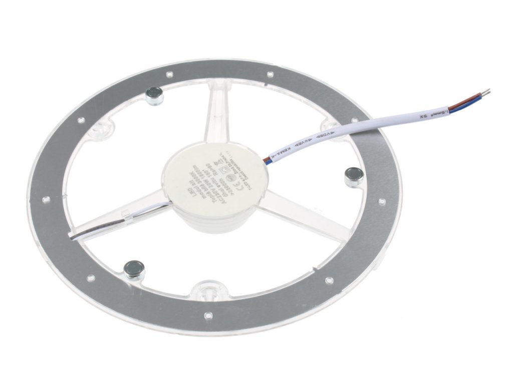 Magnetický LED modul je určený pro modernizaci stropních svítidel. Rychlá a snadná instalace spočívá v odstranění starých světelných zdrojů (například patic E27) a uchycením na kovový povrch svítidla třemi magnety, které jsou již integrované na LED modulu. Z bezpečnostních důvodů svěřte montáž odborníkovi.