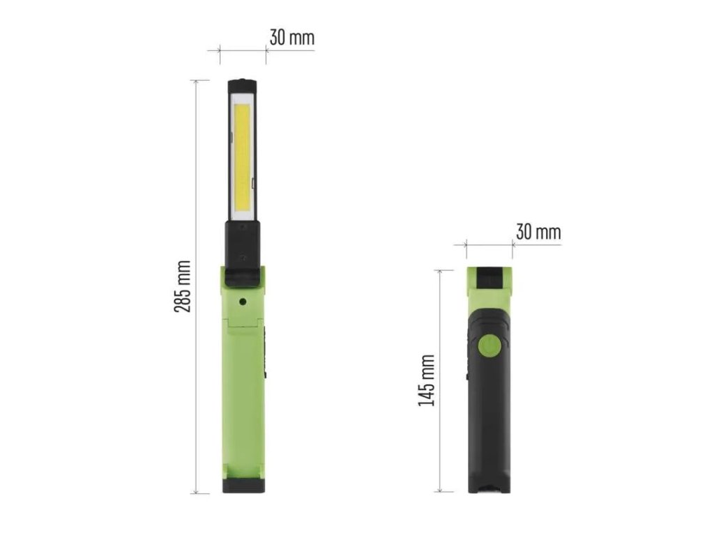Profesionální LED svítilna s maximálním světelným tokem 750 lm představuje všestranného pomocníka do každé dílny, na zahradu nebo k jakékoli práci v náročných podmínkách. Díky COB LED technologii poskytuje silné a rovnoměrné bílé světlo ve třech úrovních intenzity – 750, 300 a 150 lumenů s dosahem až 35 metrů. Oceníte také červené světlo, které šetří oči při nočním používání, nebo červené blikání, které výborně poslouží jako výstražný signál například při poruše auta.
