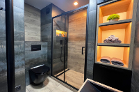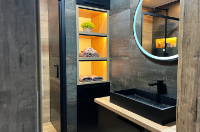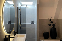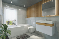 - Zóna 2 sahá do vzdálenosti 60 cm od vany nebo sprchy. Zde je vhodné volit svítidla s krytím alespoň IP54, ideálně na bezpečné nízké napětí. Typickým příkladem je osvětlení zrcadla nebo boční světla u umyvadla.