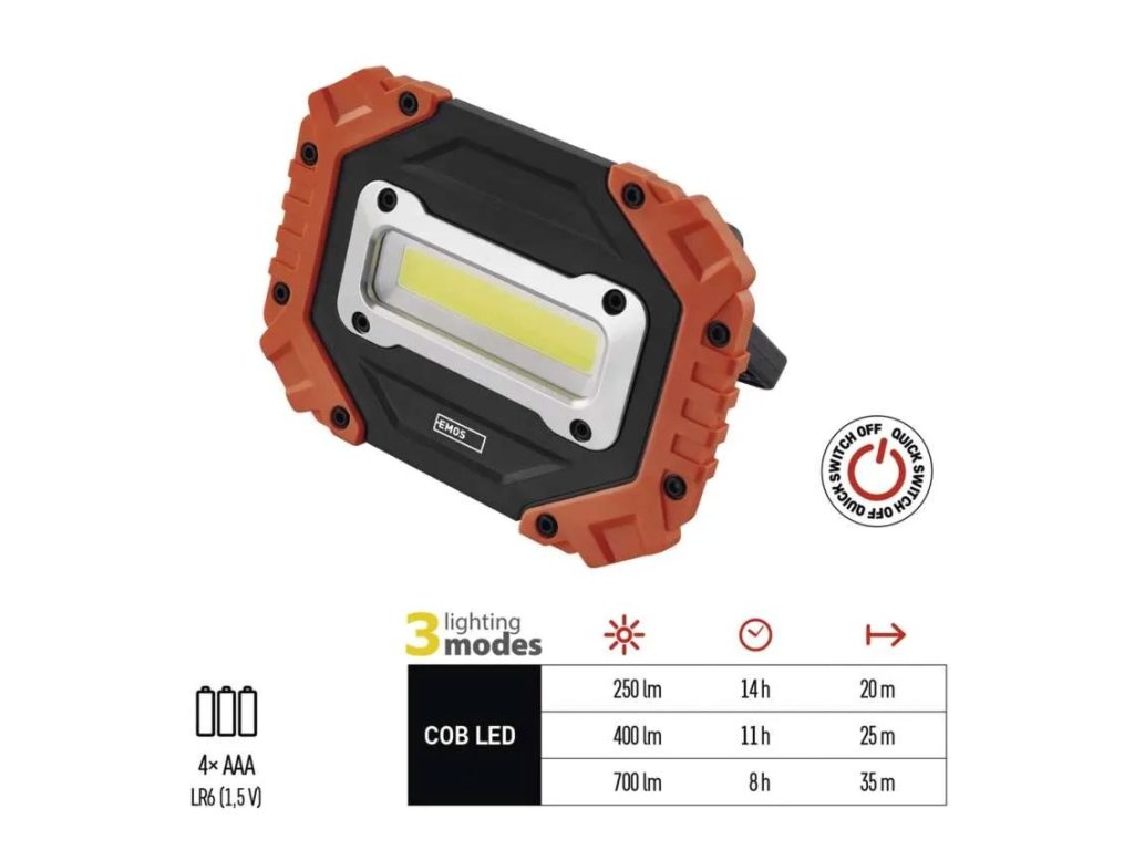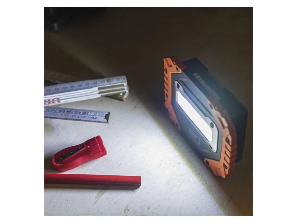 Tato praktická LED pracovní svítilna s COB technologií nabízí spolehlivé a silné osvětlení pro každou situaci. Díky maximálnímu světelnému toku 700 lm se skvěle hodí jak pro práci v interiéru, tak i v náročnějších venkovních podmínkách. Její odolná konstrukce s pogumovaným povrchem poskytuje lepší úchop a zároveň chrání svítilnu proti nárazům. Stupeň krytí IP43 zajišťuje odolnost vůči vlhkosti, takže se nezalekne ani deště či mokré trávy.