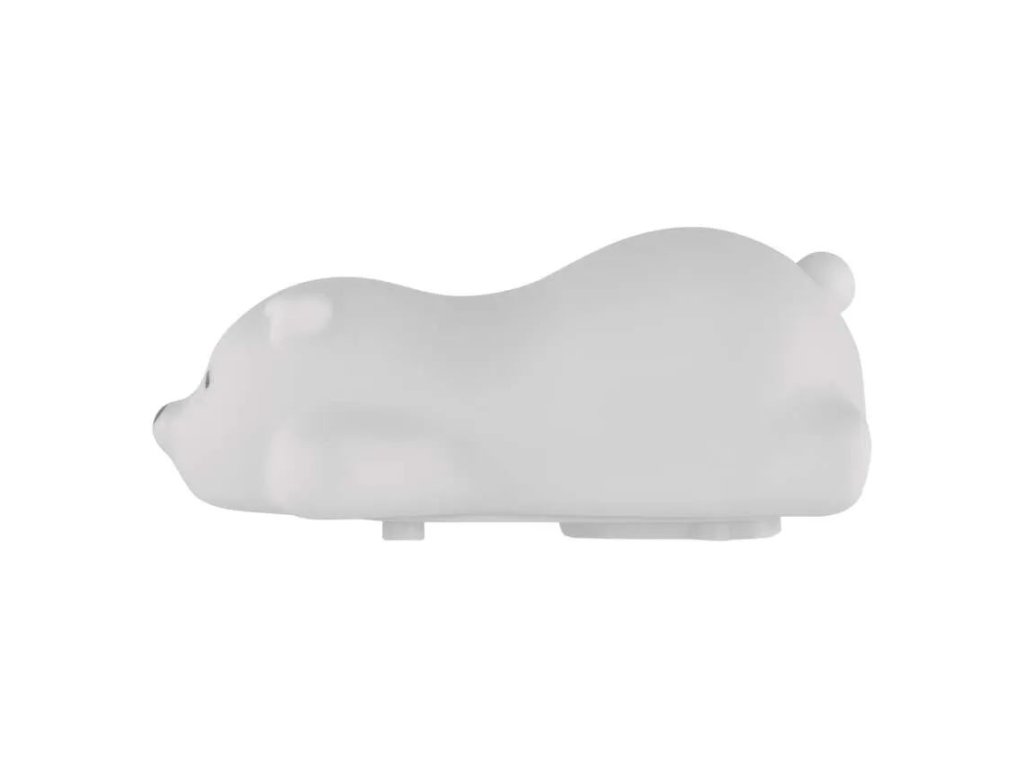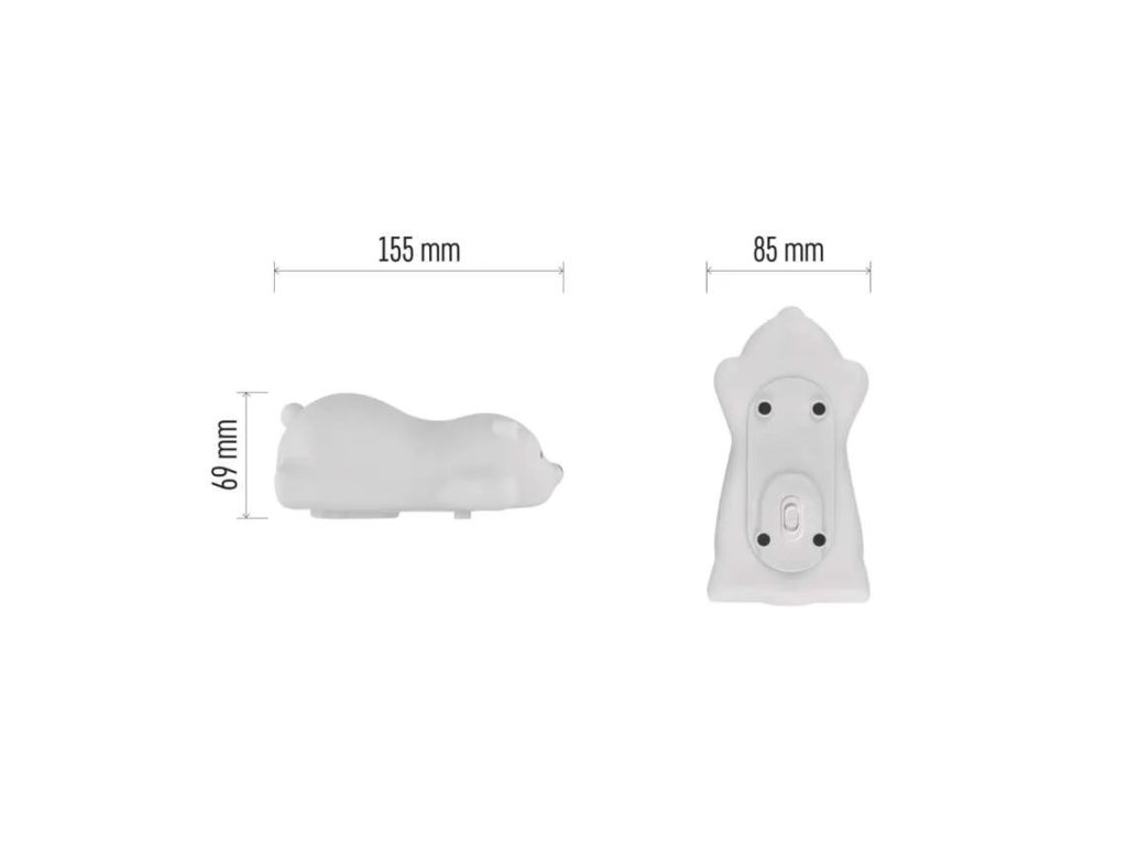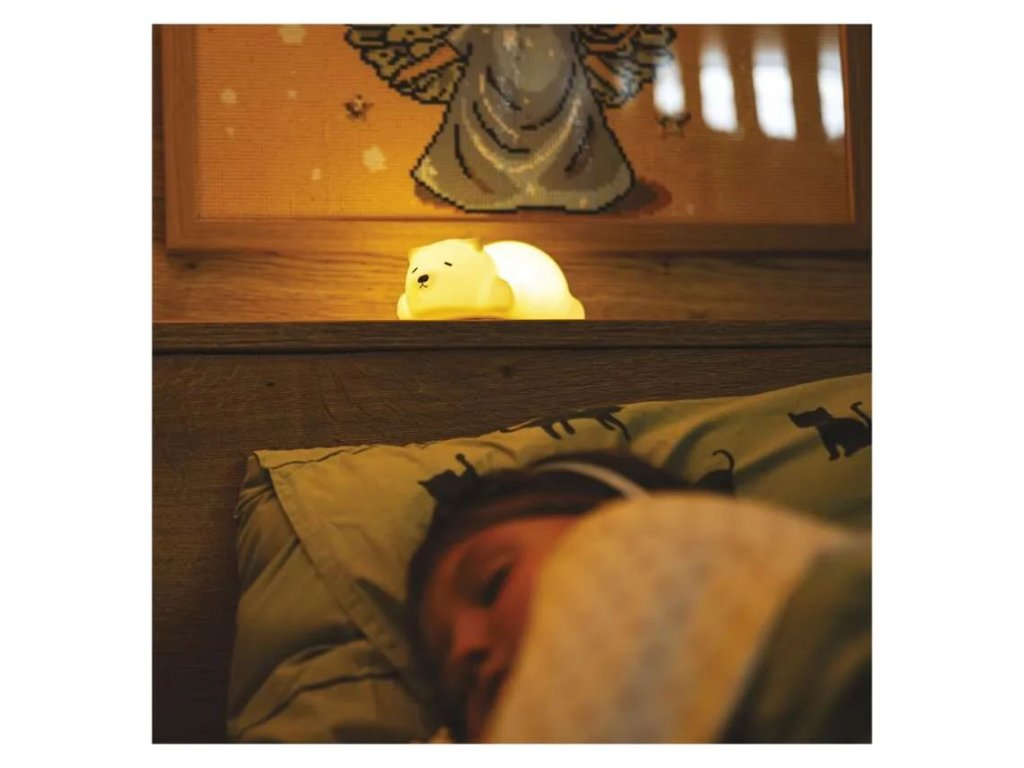 Roztomilé světýlko ve tvaru spícího medvěda vytvoří v dětském pokoji příjemnou atmosféru a díky měkkému silikonovému povrchu je bezpečné i pro nejmenší. Nabízí jak uklidňující teplé bílé světlo pro usínání, tak i barevné RGB podsvícení, které dokáže zaujmout a navodit hravou náladu. Režimy svícení snadno přepneš dotykem – k dispozici je tlumené světlo, plný výkon i multicolor efekt. Medvěd svítí až do vzdálenosti 3 metrů a dosahuje světelného toku až 20 lumenů, což je ideální pro noční orientaci v místnosti i jemné přisvícení postýlky. Praktická 30minutová časová prodleva umožní automatické vypnutí, takže světlo může zůstat zapnuté při usínání bez obav ze zbytečného vybíjení. Vestavěná Li-Ion baterie s kapacitou 1 200 mAh se dobíjí přes USB-C konektor a zajistí dlouhou výdrž na jedno nabití. Kombinace příjemného materiálu, možnosti RGB osvětlení a jednoduchého ovládání dělá z medvěda spolehlivého společníka pro děti doma i na cestách.