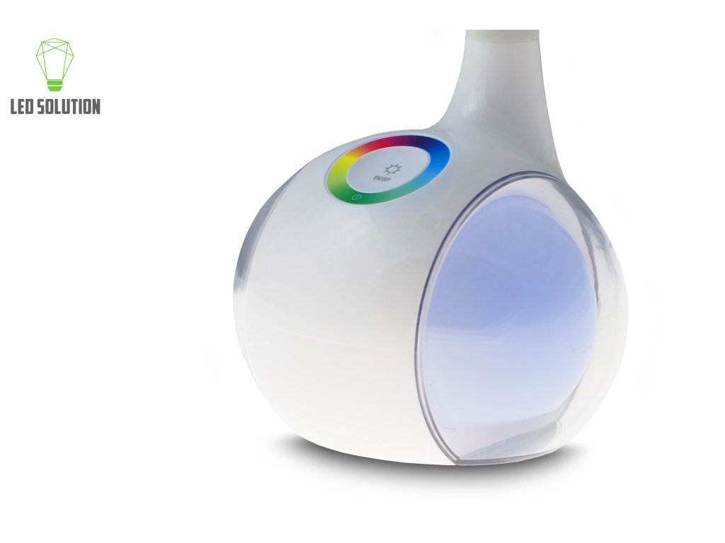 LED stolní lampička o výkonu 6W je skvělým doplňkem Vašeho stolu ať už v domácnosti nebo v kanceláři. Jedná se o elegantní bílé provedení. Lampičku lze libovolně polohovat. Lampička je vybavena nočním stmívačem s proměnlivou barevnou škálou (256 barev). Stiskem barvy na barevném pruhu si zvolíte požadovanou barvu. Lampička má 3 úrovně jasu.
