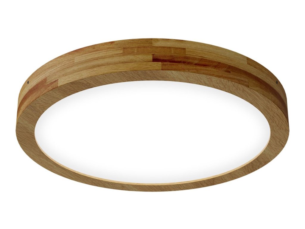 Stropní svítidlo Rondo Woodline od českého výrobce APLED propojuje moderní LED technologii s nadčasovou krásou masivního dubového dřeva. Precizně zpracované dřevěné tělo v kombinaci s kvalitním PMMA difuzorem vytváří příjemně rozptýlené světlo bez oslnění, které se hodí do obývacích pokojů, ložnic, chodeb i reprezentativních komerčních prostor. Výkon 48 W zajišťuje dostatečnou intenzitu osvětlení se světelným tokem 3600 lumenů a široký vyzařovací úhel 120° rovnoměrně prosvětlí celý prostor.