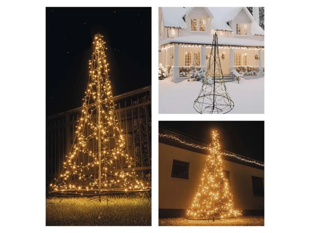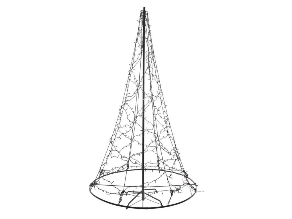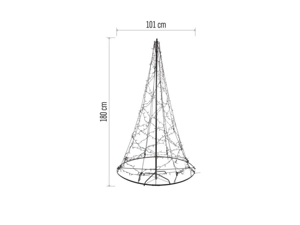LED stromek vysoký 180 cm představuje působivou vánoční dekoraci, která díky 480 teple bílým vintage LED diodám krásně rozzáří každý venkovní i vnitřní prostor. Součástí osvětlení je také jemný problikávající efekt u části LED, který dodává světlu přirozenou dynamiku a vytváří skutečně sváteční atmosféru. Pevná kovová konstrukce společně s hustě vedeným světelným řetězem zaručuje elegantní vzhled připomínající tvar vánočního stromu.