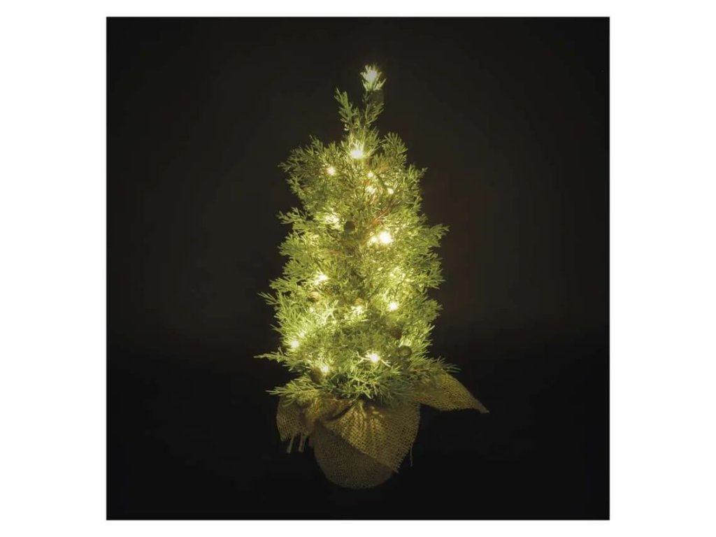 LED vánoční stromek o výšce 50 cm přinese do prostoru příjemné teplé světlo a přirozený nádech zimní zeleně. Realisticky zpracované větvičky s malými šiškami působí jako skutečný cypřiš a společně se světelnými body vytvářejí útulnou atmosféru. Stromek je zasazený v jutovém obalu, který dodává dekoraci přírodní a elegantní vzhled.