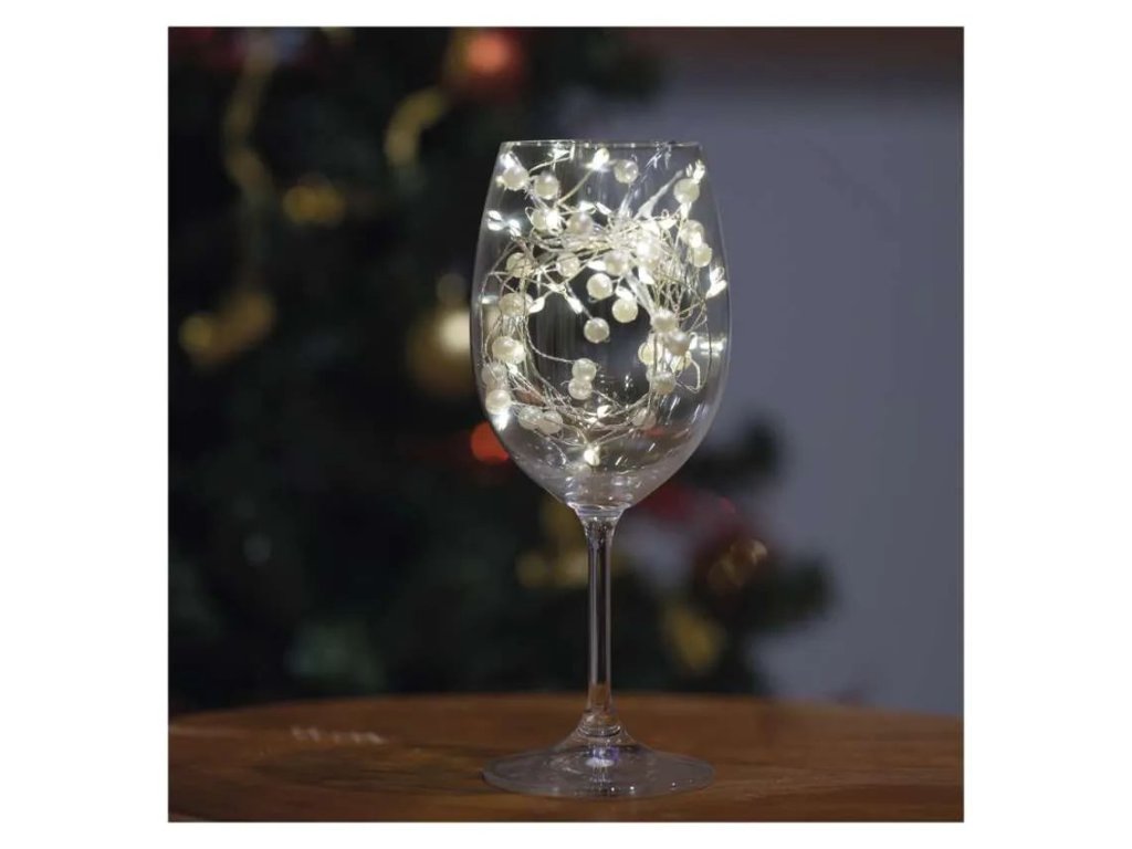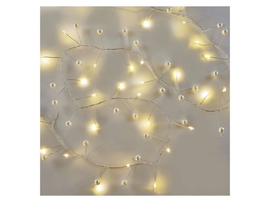 Elegantní světelná girlanda s perličkami krásně doplní každý interiér a vytvoří jemnou atmosféru nejen o Vánocích, ale i při svatbách, oslavách nebo romantickém večeru. Na délce 120 cm je rozmístěno 40 teple bílých LED diod, které společně s drobnými perličkami působí velmi dekorativně a půvabně v jakémkoli aranžmá – ve váze, na stole, kolem zrcadla i v okenním parapetu.