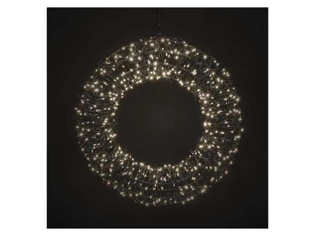 Elegantní světelný věnec s kovovou konstrukcí dokáže během okamžiku dodat interiéru i exteriéru příjemnou sváteční atmosféru. Konstrukce o průměru 38 cm je hustě propletená 480 teple bílými LED diodami, které vytvářejí rovnoměrné a efektní osvětlení po celém obvodu. Díky nadčasovému designu působí věnec jako moderní doplněk vhodný na dveře, stěnu, fasádu domu, ale i na položení na stůl či poličku.