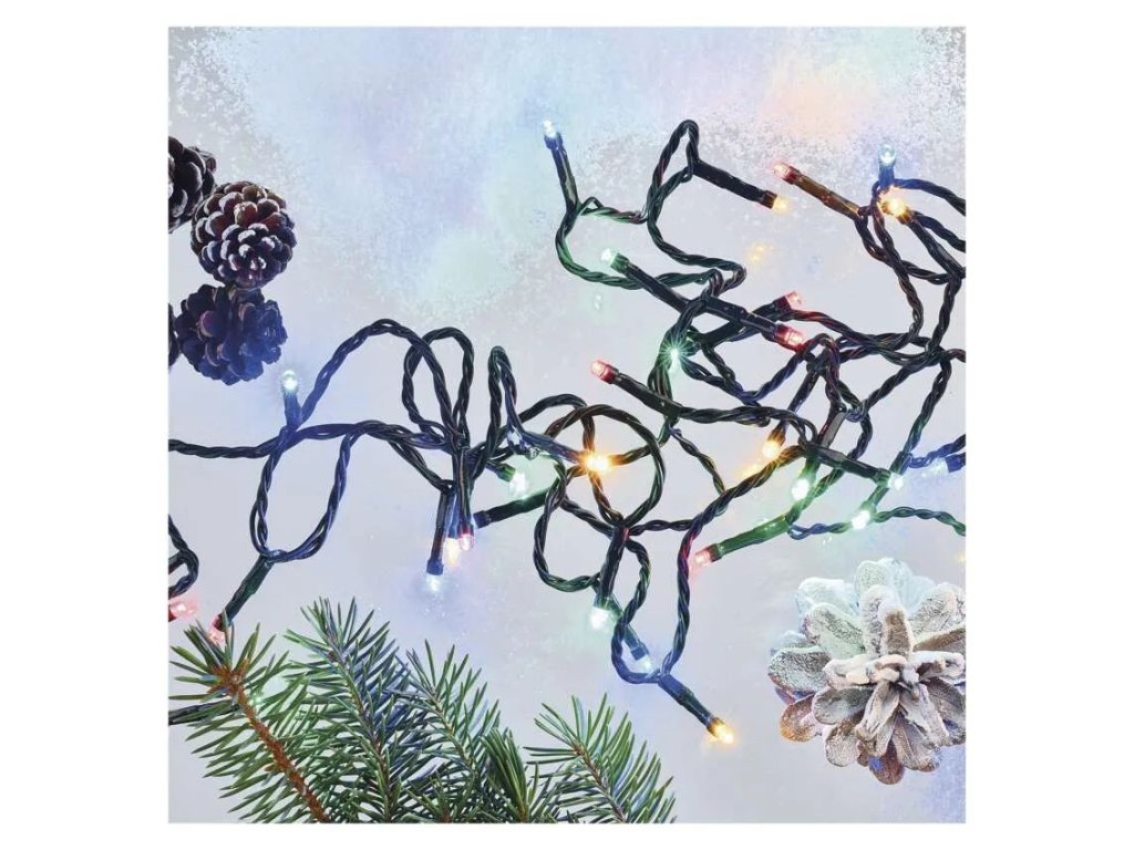 LED vánoční řetěz multicolor o délce 50m vhodný do venkovních i vnitřních prostor. Vhodný pro strom vysoký 3m