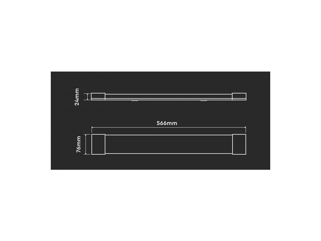 LED zářivkové svítidlo o délce 56,6 cm představuje moderní náhradu za klasická zářivková svítidla. Je vhodné pro montáž na strop nebo stěnu, kde poskytne rovnoměrné a úsporné osvětlení v minimalistickém designu. Díky kompaktním rozměrům se skvěle hodí do kanceláří, chodeb, obchodů i domácností.