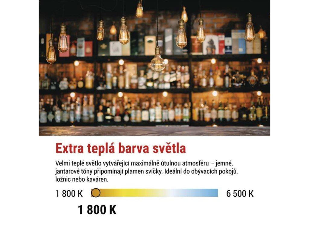 LED technologie zajistí, že žárovka okamžitě po zapnutí svítí na plný výkon bez zahřívání. V porovnání s klasickými vláknovými žárovkami spotřebuje až o 90 % méně elektrické energie, což přináší výraznou úsporu nákladů. Dlouhá životnost světelného zdroje až 25 000 hodin zaručuje bezstarostné používání po dlouhou dobu.