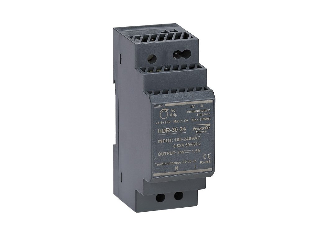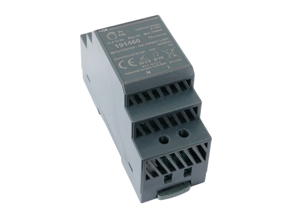 LED elektronický spínaný zdroj pro LED pásky s výkonem 24W určený pro vnitřní použití. Konstrukce umožňuje uchycení na DIN lištu přímo do rozvaděče. Zdroj je vybaven tepelnou ochranou, ochranou proti zkratu i proti přetížení a nabízí možnost manuálního doladění výstupního napětí v rozsahu ±10%.