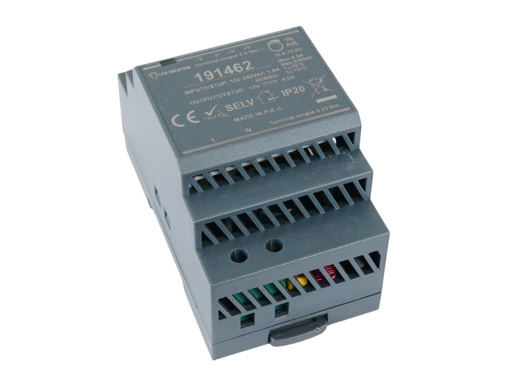 LED elektronický spínaný zdroj pro LED pásky s výkonem 54W určený pro vnitřní použití. Konstrukce umožňuje uchycení na DIN lištu přímo do rozvaděče. Zdroj je vybaven tepelnou ochranou, ochranou proti zkratu i proti přetížení a nabízí možnost manuálního doladění výstupního napětí v rozsahu ±10%.