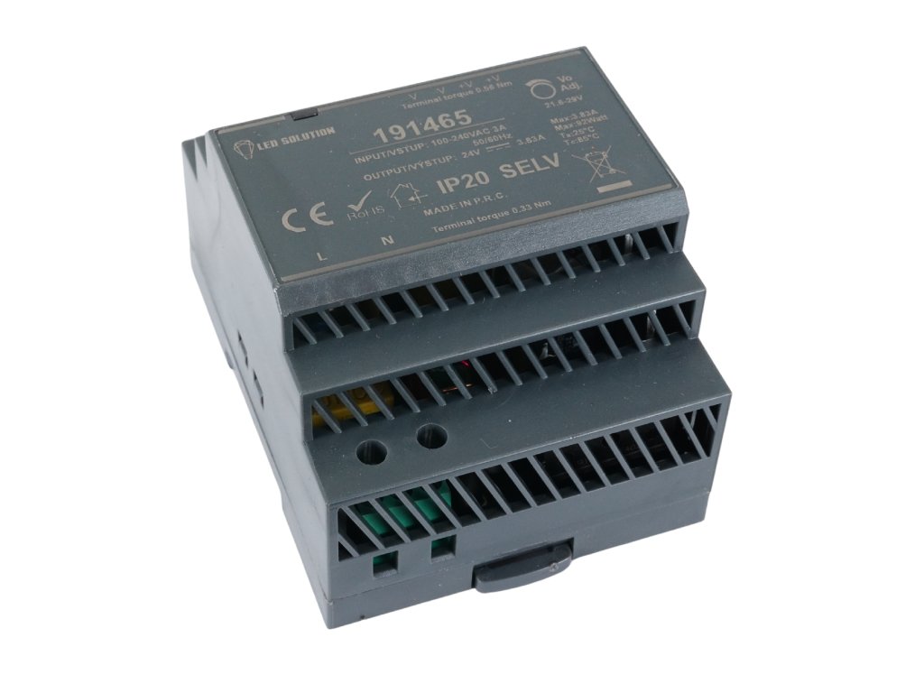 LED elektronický spínaný zdroj pro LED pásky s výkonem 100W určený pro vnitřní použití. Konstrukce umožňuje uchycení na DIN lištu přímo do rozvaděče. Zdroj je vybaven tepelnou ochranou, ochranou proti zkratu i proti přetížení a nabízí možnost manuálního doladění výstupního napětí v rozsahu ±10%.