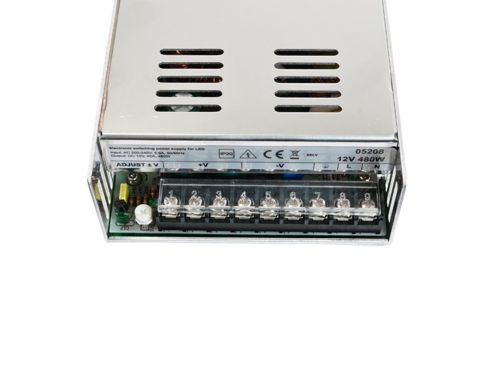 Vnitřní zdroje slouží pro napájení LED svítidel. Převádějí napětí ze sítě (AC 230V - dle nastavení přepínače) na nízké napětí (DC 12V / 40A). Zdroje jsou opatřeny tepelnou pojistkou, pojistkou proti přetížení a pojistkou proti zkratu. Po odstranění zkratu je zdroj plně funkční.