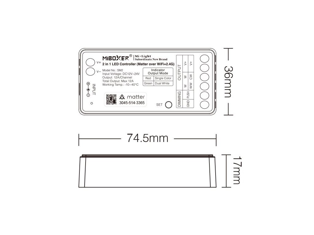 Mi-Light MiBoxer WIFI+RF Matter Přijímač 2v1 pro jednobarevné a CCT LED pásky