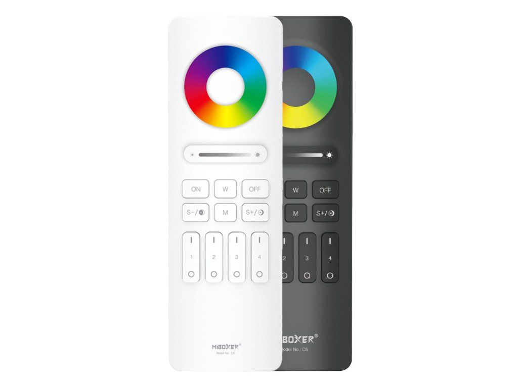 Dálkový ovladač Mi-Light pro RGB a CCT LED pásky je bezdrátový radiofrekvenční ovládací systém produktů řady Mi-Light / MiBoxer. S jedním ovladačem lze ovládat až 4 zóny osvětlení, které se můžou skládat z několika přijímačů. Tyto přijímače se po sehrání s ovladačem ovládají jako jedna sekce.
