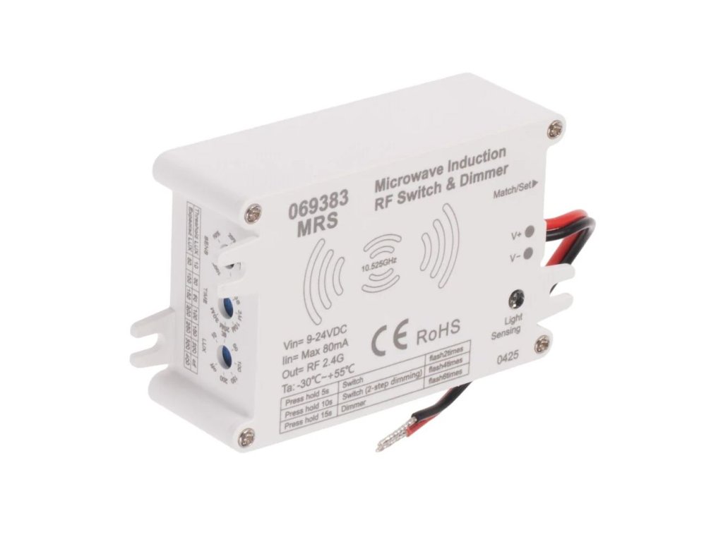 Pohybový senzor dimLED MRS slouží ke spínání přijímačů řady dimLED. Pohybové čidlo lze napárovat tedy například k dimLED přijímačům na LED pásky (jednobarevné, RGB, CCT atd), případně i spínačům a stmívačům na 230V osvětlení. Výhoda čidla je, že můžete umístit čidlo mimo prostor s nainstalovaným osvětlením a osvětlení i nadále ovládat ovladačem. V praxi tedy může instalace vypadat tak, že čidlo umístíte například u vstupu dveří domu a sepne se Vám osvětlení na jiném místě domu a okruhu (zahradní altán, světlo v jiné místnosti apod.).