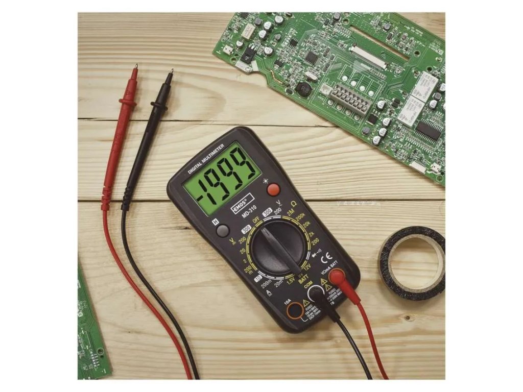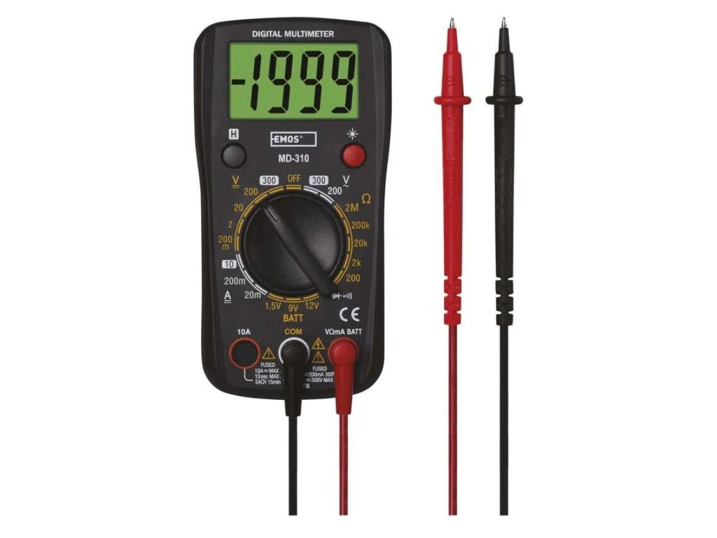 Multimetr MD-310 je praktický měřicí přístroj určený pro hobby uživatele i domácí kutily, kteří potřebují mít po ruce spolehlivý nástroj pro kontrolu elektrického napětí, proudu i odporu. Nabízí všechny základní funkce měření přes hroty, a navíc umožňuje testování baterií a diod, takže jej využijete nejen při údržbě domácích spotřebičů, ale i při stavbě nových elektroinstalací.