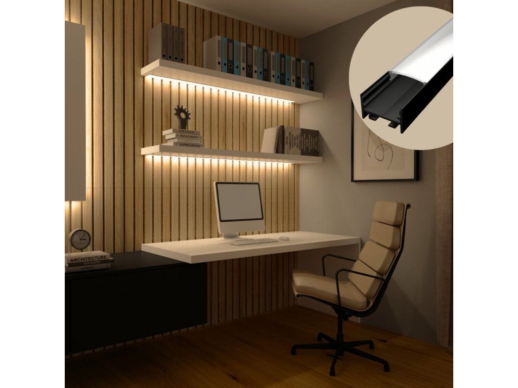Nástěnný profil pro LED pásky a pro konstrukci svítidel N19 černý