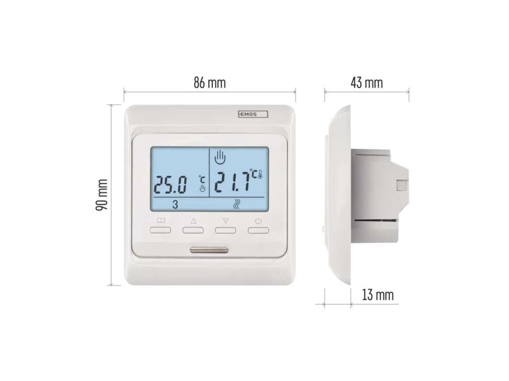 Programovatelný drátový termostat P5601UF je ideálním řešením pro přesné a komfortní řízení podlahového vytápění v domácnosti i kanceláři. Umožňuje nastavit teplotu v širokém rozmezí od 5°C do 95°C, takže se přizpůsobí jak zimnímu vytápění, tak i letnímu režimu s minimální teplotou pro útlum. Díky kombinaci prostorového a podlahového čidla zajišťuje vždy optimální teplotní komfort bez výkyvů.