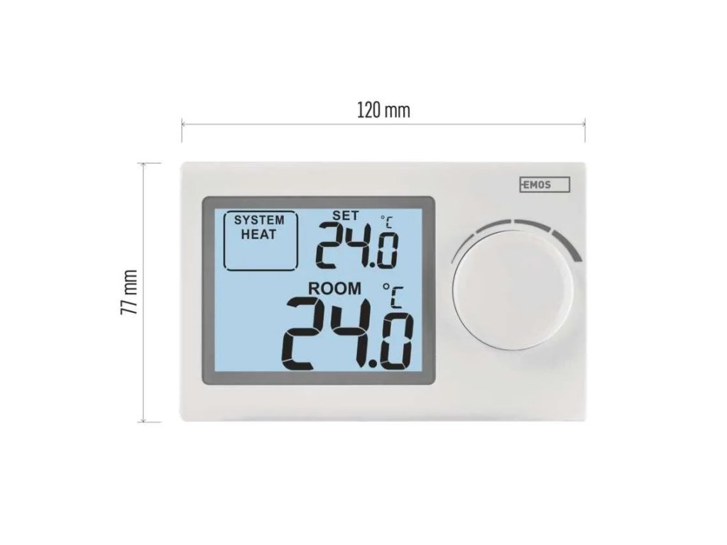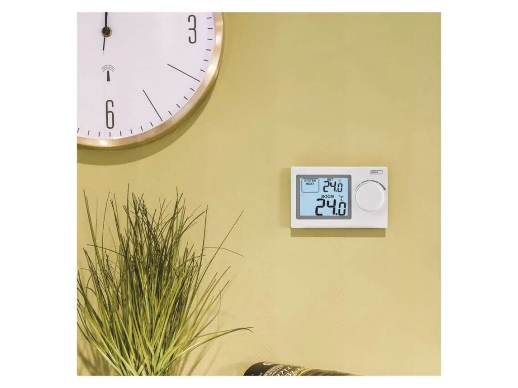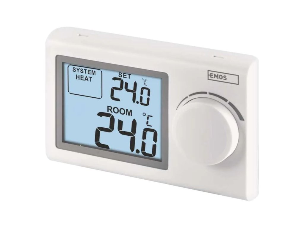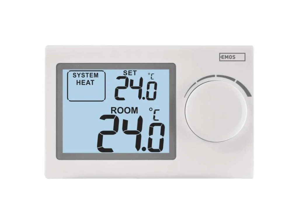 Pokojový manuální drátový termostat P5604 vám pomůže udržet ideální teplotní komfort ve vaší domácnosti, kanceláři nebo na chalupě po celý rok. Jednoduchým otočením kolečka si nastavíte požadovanou teplotu v rozmezí od 5°C do 35°C, ať už potřebujete vytápět v zimě nebo mírně chladit v létě. Díky přehlednému displeji s podsvícením a velkými číslicemi máte vždy dokonalý přehled o aktuální i nastavené teplotě.